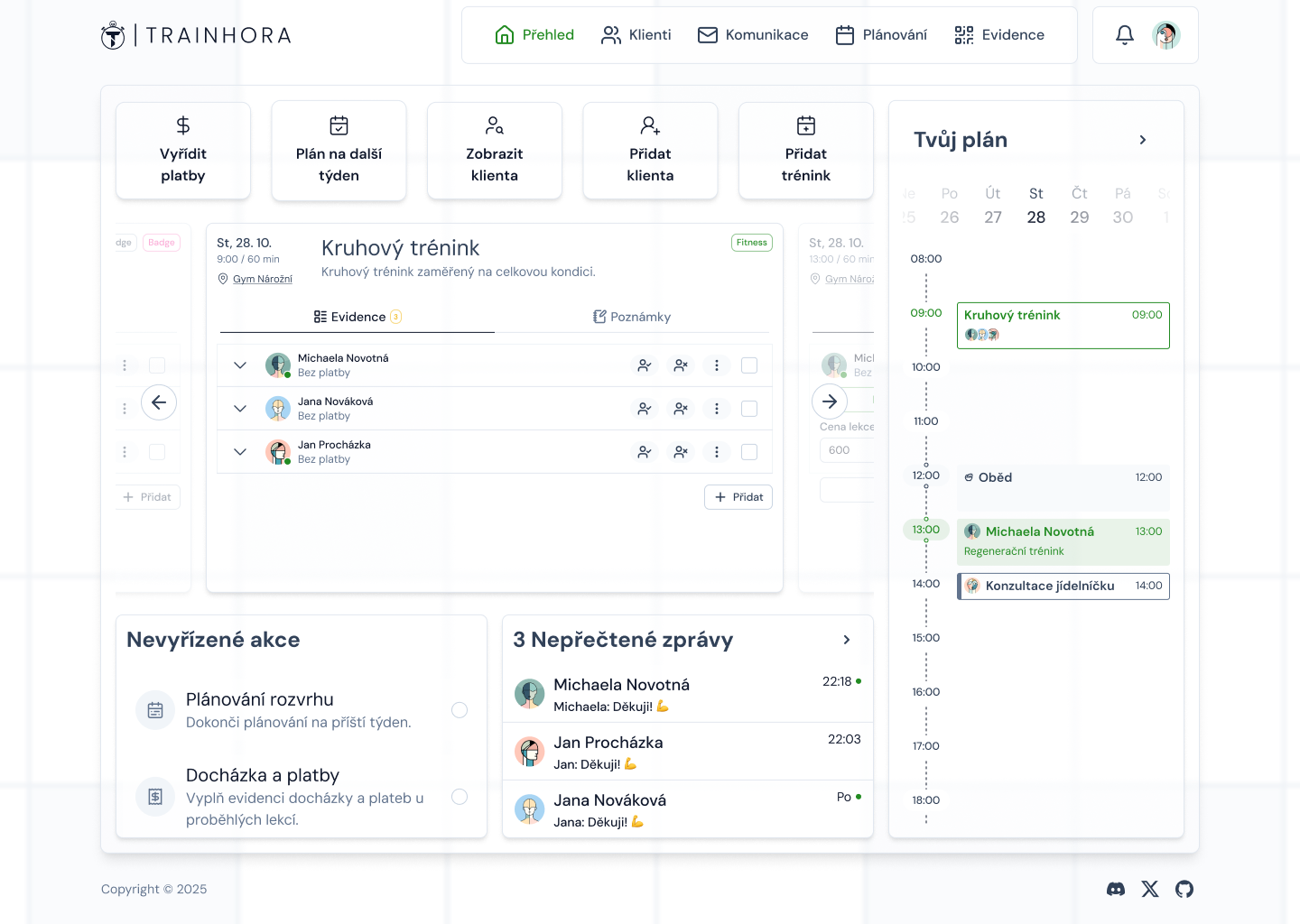 Trainhora Product Design Project which was a part of my master thesis. I made complete product MVP prototype from scratch. From research to design, prototype and testing. Project Type School Commercial Project Areas UX Research UI Research Figma Prototype This thesis focuses on designing a digital product that supports the work organization of personal fitness trainers. It assumes that a significant proportion of trainers rely on fragmented tools and repeatedly deal with administrative tasks related to scheduling training sessions, communicating with clients, tracking attendance, or managing payments. The aim of this thesis is to identify the key problems, needs, and obstacles trainers encounter in these activities and, based on these findings, propose a digital solution that reflects their working processes. The methodological framework of the thesis is grounded in the principles of design thinking. The process involves a literature review and a market analysis of existing tools for scheduling, client management, and fitness services. The main part of the research consists of eight in-depth interviews with personal trainers, whose outputs were analysed using open and axial coding. Based on thematic clusters, problem areas were defined, HMW questions were formulated, and design directions were identified and subsequently prioritised using the Impact–Effort method. From these outputs, the functionalities of the MVP product were determined. This phase was followed by the creation of an information architecture, user flows, and several prototype iterations, which were continuously evaluated through internal review and later verified through moderated user testing. The research revealed several recurring problem areas, particularly in schedule planning and changes, client information management, attendance tracking, payment administration, and client communication. Key trainer needs were also identified, especially those related to clarity, data centralisation, and reducing manual tasks. These findings informed the definition of the main design directions and the prioritisation of functionalities for the future solution. The outcome of the thesis is a comprehensive design of a digital tool that addresses the identified problems and reflects the needs uncovered in the research. The resulting concept was developed through multiple design iterations and provides a foundation for further development and implementation into a fully functional application.